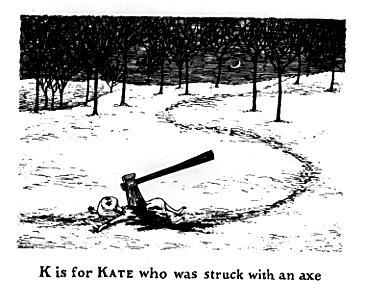 But Edward Gorey is wonderful. And though I’ve decided not to take it as a sign (chances are I won’t get struck with an axe. I haven’t been camping in awhile, though now that I think about it, lumberjack weekend is coming up, so maybe beware? Anyway…) and instead use it as a prompt to share an injury story.