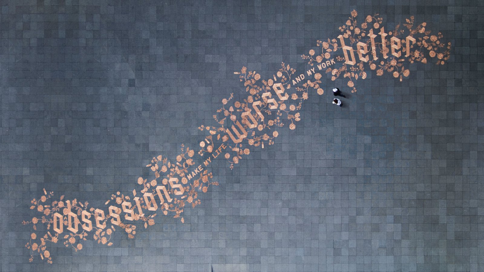Coin art from Amsterdam by artist Stephan Sagmeister. In case you can’t read it, it says: “Obsessions Make My Life Worse and My Work Better.” It was commissioned back in 2008 by Urban Play for the project Things I Have Learned In My Life So Far.