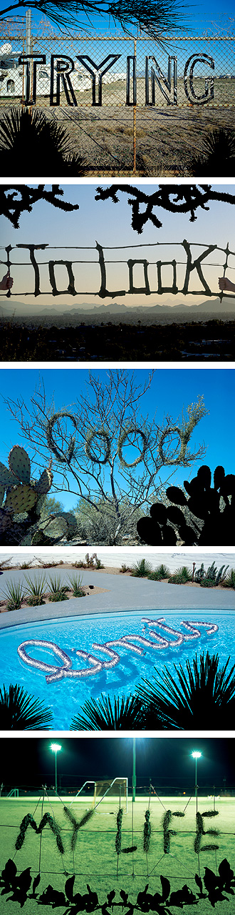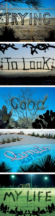 Image: “Trying to look good limits my life” Art direction: Stefan Sagmeister. Design: Stefan Sagmeister, Matthias Ernstberger. Photography: Matthias Ernstberger. Client: Art Grandeur Nature.