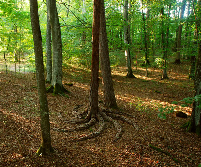 Meyer’s art has a very similar feel, though it is slightly more… organic, is the word I want to use. It’s a little softer. He makes sunbursts out of dandelions and turns trees into claw-footed beasts. It flows more easily, and doesn’t have any of the harsh geometric edges that I associate with Goldsworthy.